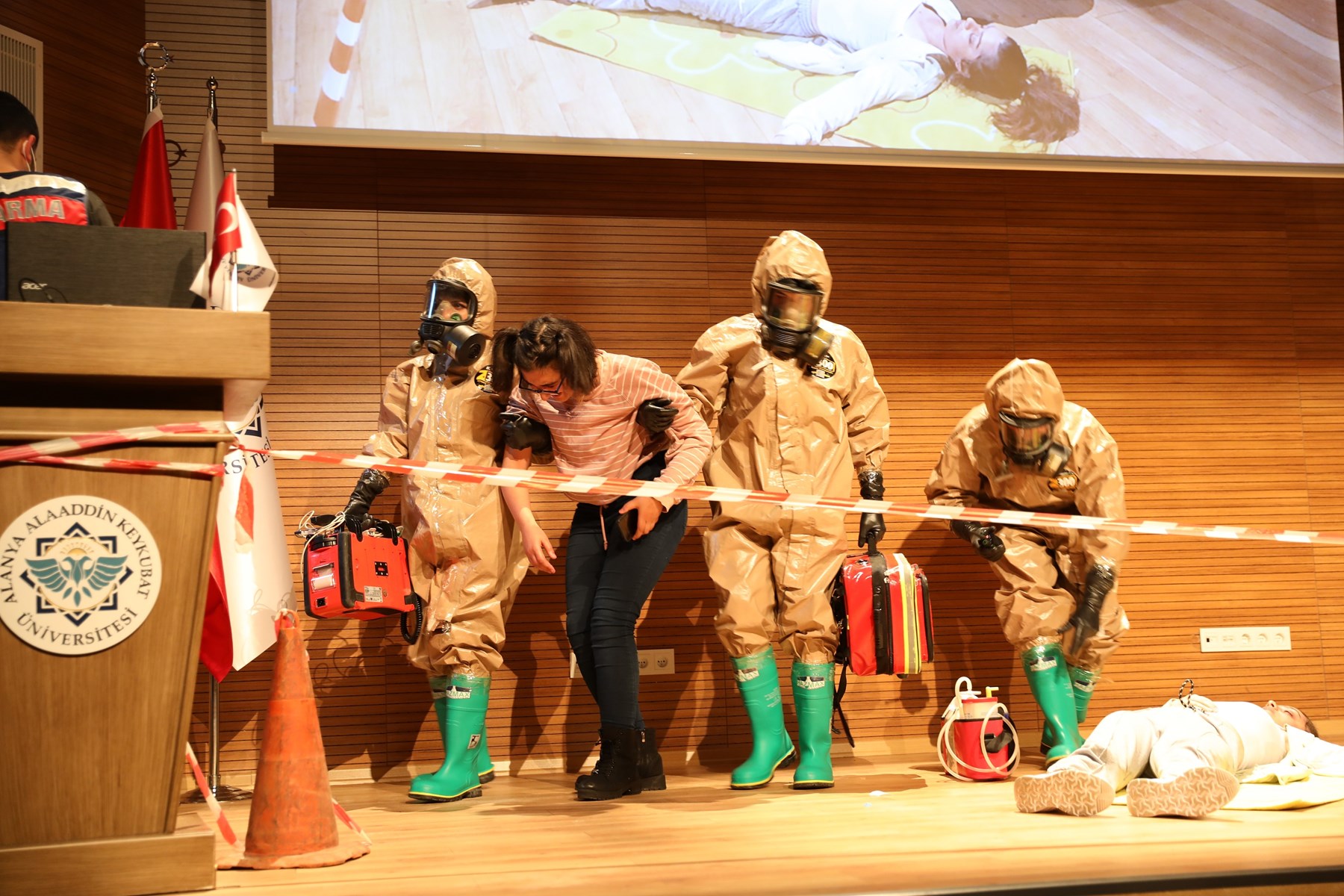 Alanya Alaaddin Keykubat Üniversitesi (ALKÜ) tarafından 22 Aralık Paramedik Günü kapsamında “Alanya 112’nin Bir Günü” konferansı düzenlendi. İlk ve Acil Yardım Kulübünün organize ettiği etkinliğe ALKÜ Rektörü Prof. Dr. Ekrem Kalan, Eğitim Fakültesi Dekanı Prof. Dr. Süleyman Cem Şaktanlı, Sağlık Bilimleri Fakültesi Dekanı Prof. Dr. Hayriye Ünlü, ALKÜ Sağlık Hizmetleri Meslek Yüksekokulu Müdürü Dr. Öğr. Üyesi Arife Albayrak Coşar, akademisyenler ve öğrenciler katıldı. ALKÜ Öğretim Görevlisi Mustafa Enes Sarık’ın hazırladığı programda, 7 acil sağlık hizmeti kapsamında 7 vaka senaryosunun canlandırıldığı etkinlik, İlk ve Acil Yardım Programı 1 ve 2. Sınıf öğrencilerinden oluşan ekipler tarafından gerçekleştirildi. Öğrenciler, Alanya özelinde sık karşılaşılan ve bölgelere özgü vakalara müdahale etti. Ayrıca programda, paramediklerin görev esnasında karşılaştıkları zorluklara, şiddete uğrayan sağlık personellerine ve asılsız ihbarlardan dolayı kaybedilen zamanlara dikkat çekildi.