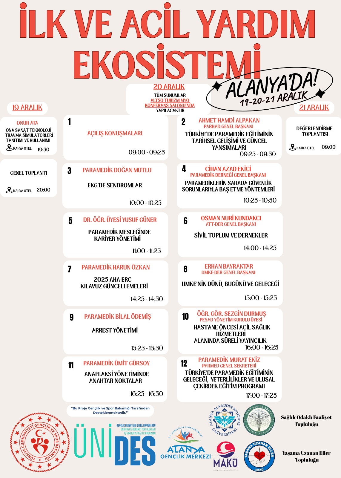 "İlk ve Acil Yardım Ekosistemi Alanya'da" isimli etkinlik 19-20-21 Aralık 2025 tarihleri arasında düzenlendi.