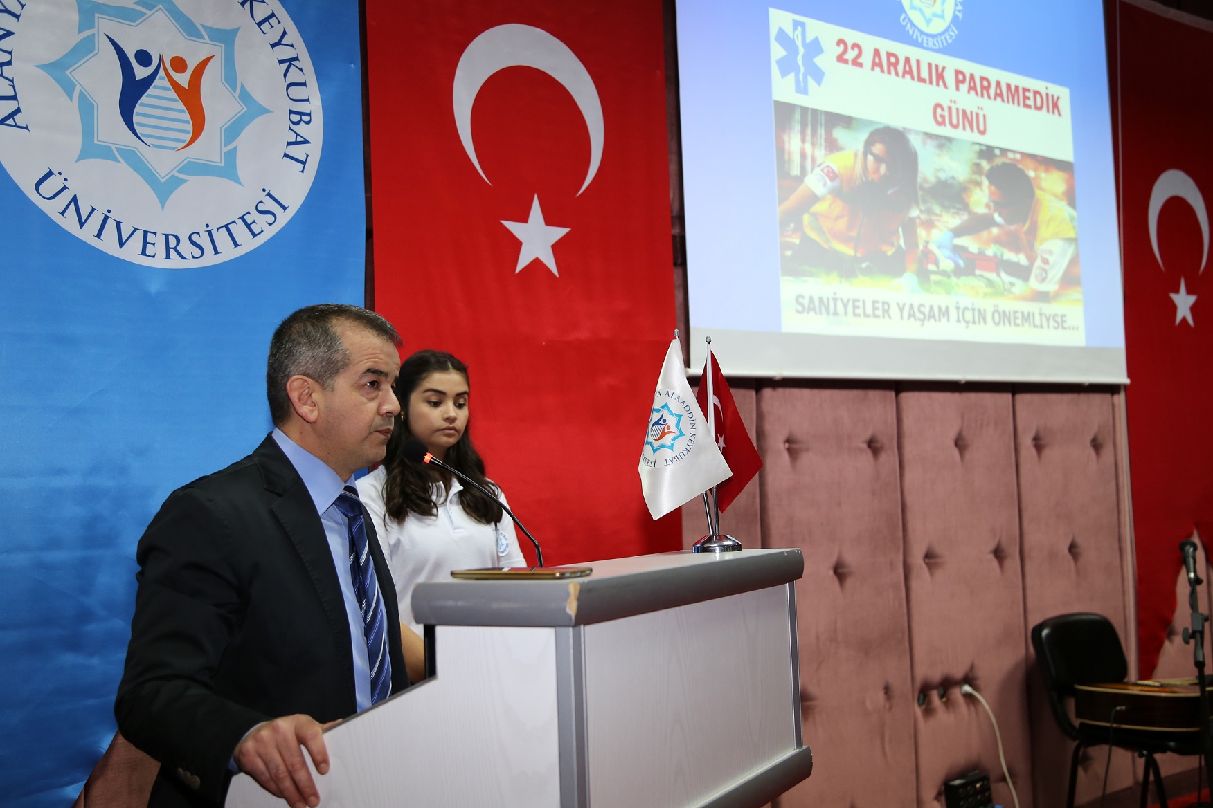ALKÜ Sağlık Hizmetleri Meslek Yüksekokulu Müdürü Doç. Dr. Ahmet ARSLAN, Tıp Fakültesi Dekan Yardımcısı Yrd.Doç.Dr. M. Yalçın GÜNAL, Alanya Eğitim Araştırma Hastanesi Başhekimi Dr. Tevfik YAZAN ve üniversitemiz öğrencilerinin katılımlarıyla gerçekleştirilen etkinlikte, Sağlık Hizmetleri Meslek Yüksekokulu müdürü Doç. Dr. Ahmet ASLAN Paramedik adaylarına, üniversitemiz öğrencilerine ve sağlık meslek lisesi öğrencilerine paramedik eğitimi ve günü hakkında bilgiler verdi. Konuşmasına da mesleğin tanıtılmasına ve önemine vurgu yapan Doç. Dr. Ahmet ASLAN paramediklerin ve paramedik adayı öğrencilerin gününü kutlayarak, meslek hayatlarında başarılar diledi.